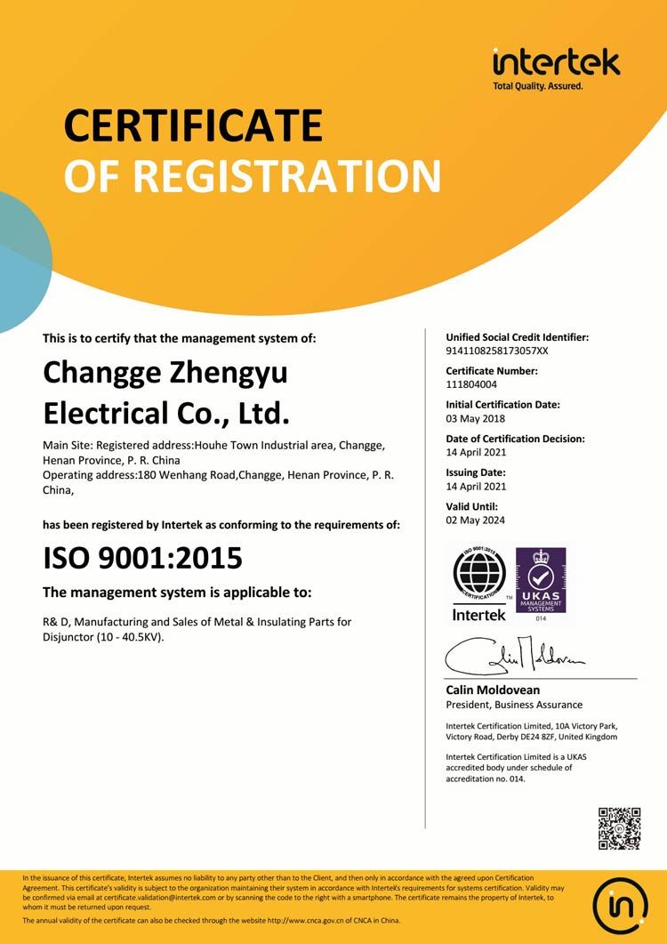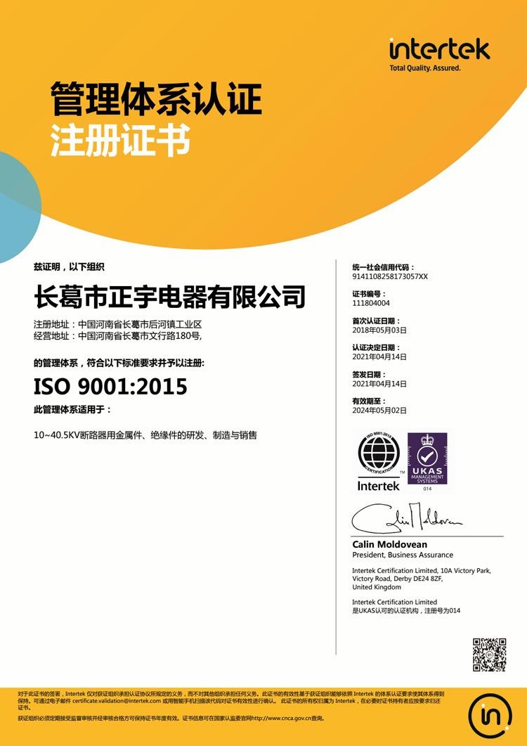 質(zhì)量管理體系認(rèn)證證書(shū)